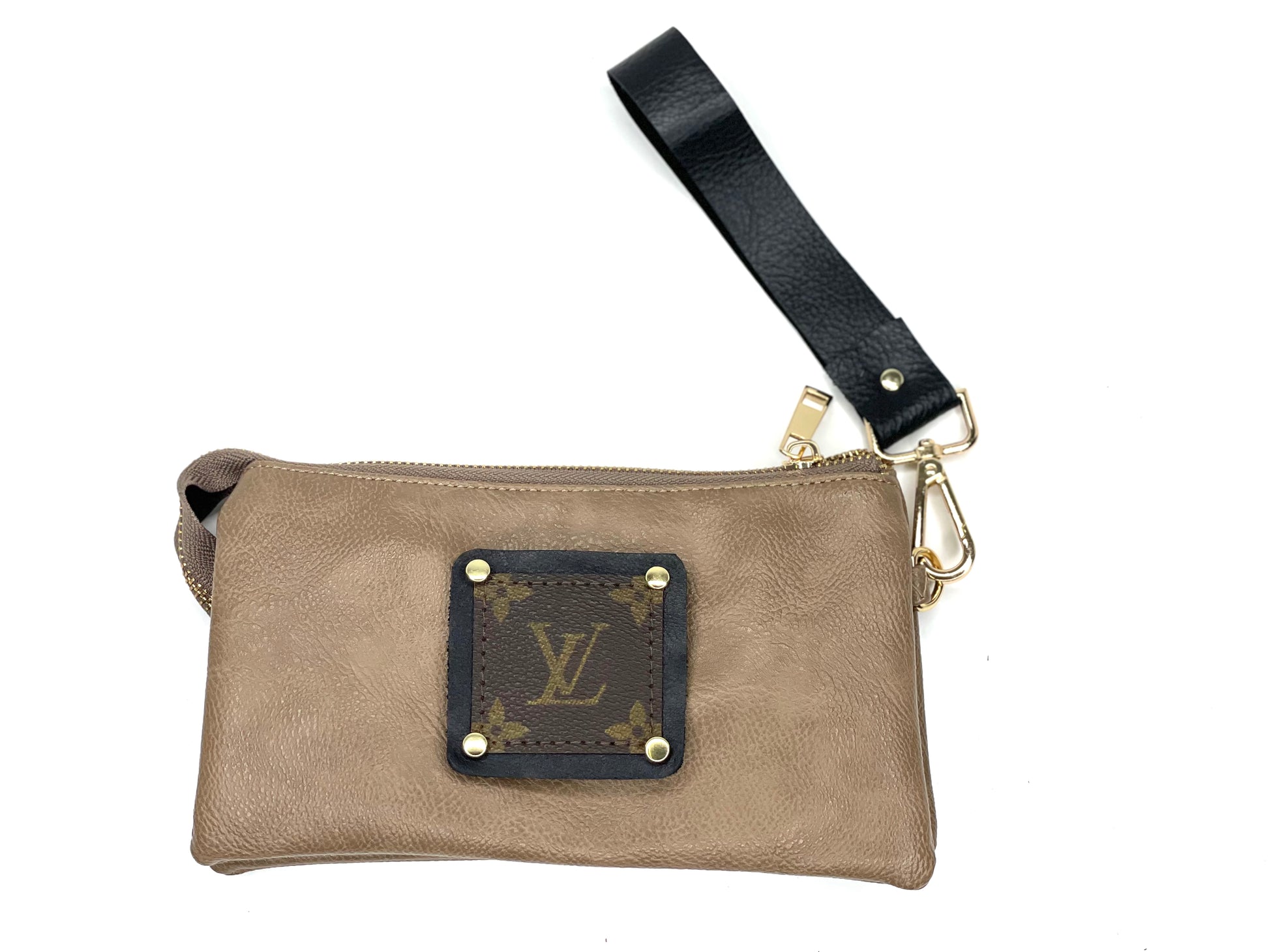 Jill in latte (black patch) with leather strap - Patches Of Upcycling