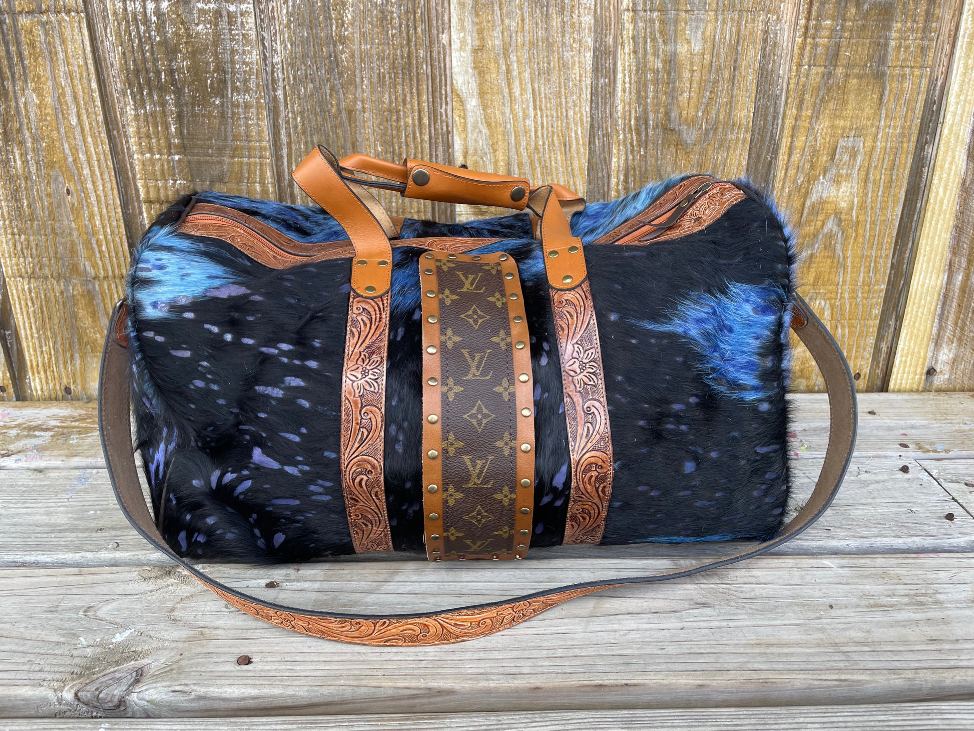 Large duffel HOH black, blue, and purple acid wash (4LV) - Patches Of Upcycling