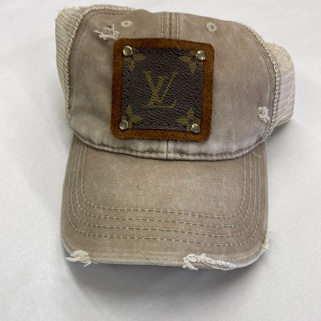 PP11 - Faded Distressed Khaki Hat with Cream Back Brown/Gold - Patches Of Upcycling