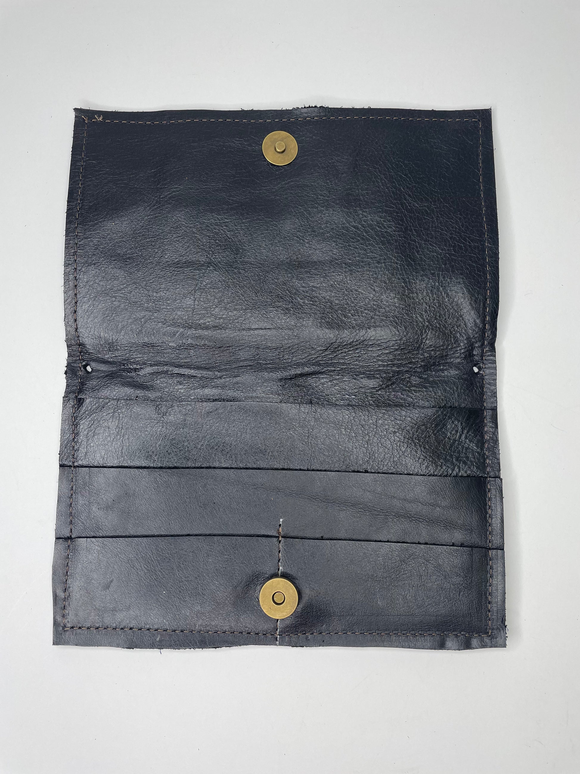 Small crossbody 8.5”x 5.5” has wallet interior with wristlet option